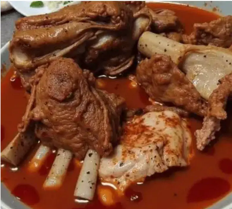 La birria de chivo presenta una carne extremadamente tierna, impregnada de una salsa espesa, roja y profundamente aromática. El sabor es intenso pero equilibrado, con notas ahumadas, especiadas y ligeramente ácidas.