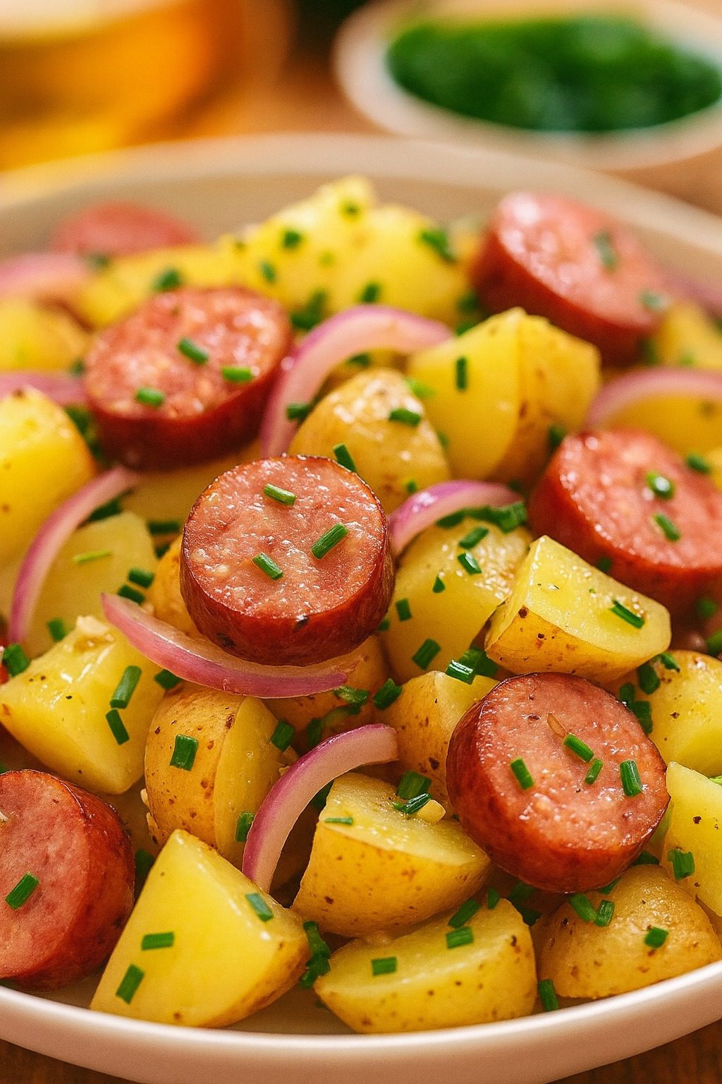 La Ensalada Alemana es un plato sencillo, sabroso y muy versátil. Ya sea cremosa con mayonesa o ligera con caldo y vinagre, siempre resulta deliciosa y es un acompañamiento perfecto para carnes, barbacoas o celebraciones.