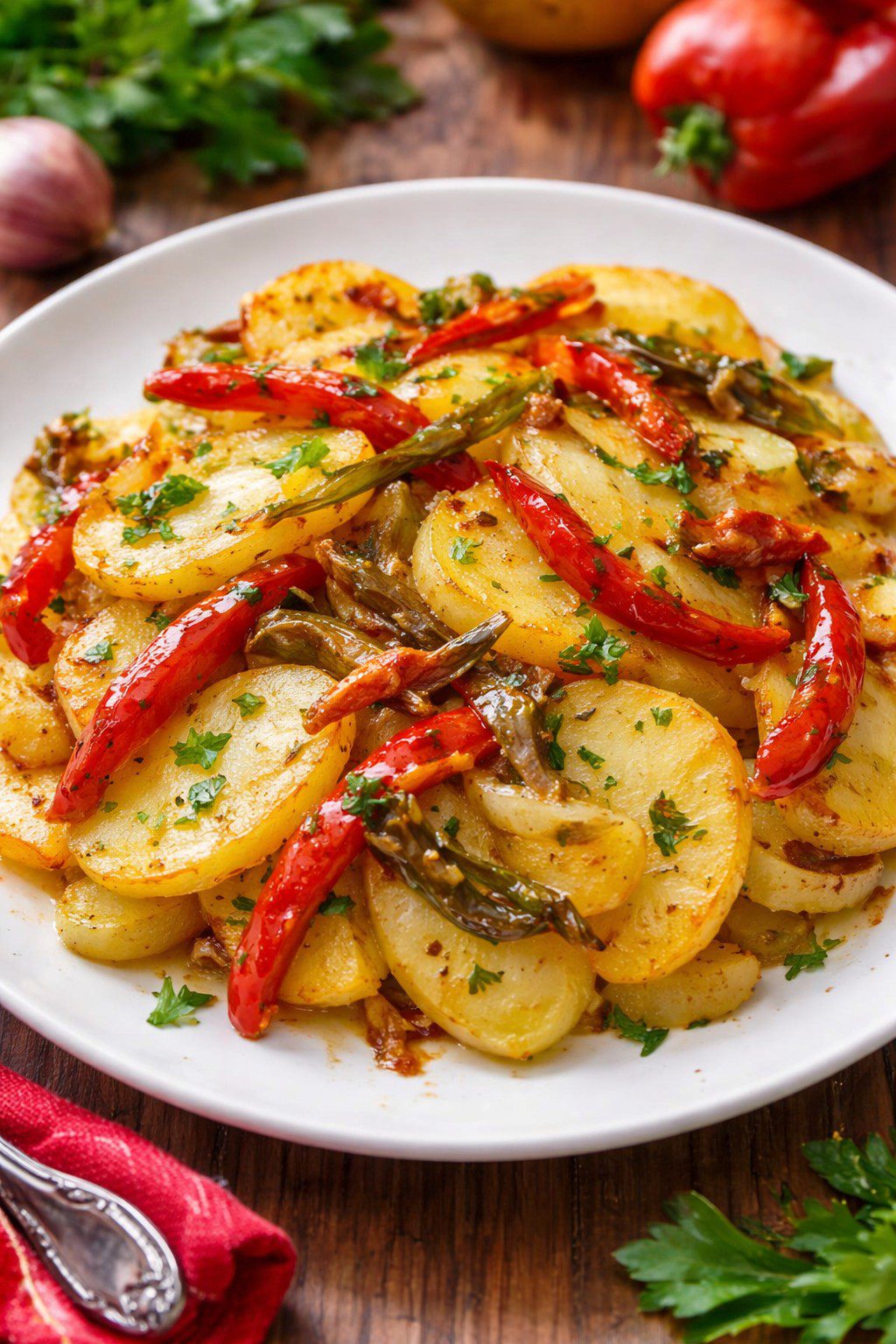 Con el tiempo, este plato humilde se convirtió en un clásico imprescindible, presente tanto en casas como en bares y ventas. Hoy se sirve como guarnición o plato principal, a menudo acompañado de huevo frito, pescado o carne, demostrando que la sencillez bien hecha es auténtica alta cocina 🍳✨.