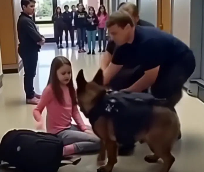 No gruñó, no ladró. Simplemente se detuvo en medio del pasillo del colegio Jefferson y clavó la mirada en la niña de la sudadera rosada como si el resto del mundo hubiera dejado de existir.